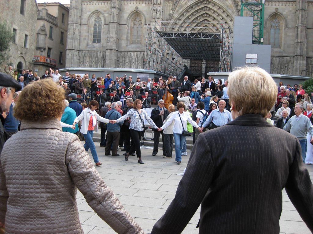 - Perhaps the most charming experience was when we stumbled upon local residents of all ages and shapes joining hands in traditional folk-dancing circles, accompanied by a live band. Skilled amateurs, they apparently meet every Sunday in the Cathedral plaza to keep alive a rather sedate manifestation of Catalan heritage.